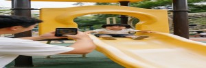 然后找一个孩子肯定会经过的地方,比如滑梯出口、门口,先站那里对好焦,手指按住屏幕锁住焦点。