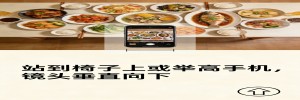 下次再拍菜,试着站到椅子上,或者把手机举高,让镜头垂直向下,这就是“俯拍” 。