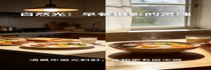 早餐拍照的黄金法则:用光比摆盘更重要。清晨的自然光从东边来,把盘子端到窗边,让光斜射在食物上,油花会发亮,蒸汽会更明显。