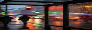 上个月下雨,我躲在公交站台,看见玻璃上挂满水珠,外面的车灯、红绿灯、行人的伞,全都糊成一团彩色。我隔着玻璃拍了一张,水珠像滤镜,把普通的街景变成了油画。