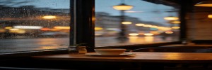 上周下雨我在咖啡馆拍了一张,发了之后好几个人问是什么滤镜。我说没滤镜,就是玻璃上的雨。