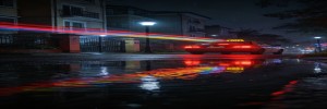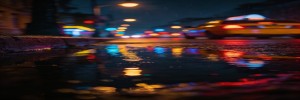 刚下过雨的晚上,路边一个小水坑,大多数人绕着走。