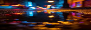 我蹲下去,手机几乎贴到水面。屏幕里,路灯、霓虹灯、刚开过去的出租车尾灯,全倒映在那巴掌大的水面上,像打翻的调色盘。