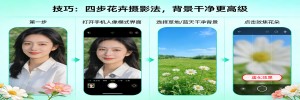 试试这个笨办法:把花放在画面的左下角或右下角,背景找一片干净的草地、蓝天,或者另一朵虚化的花。打开人像模式,等背景变模糊。三秒钟的事,普通小花也能拍出杂志感。记住,摄影是做减法,越简单越高级。