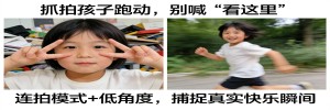 想拍出灵动的瞬间,把手机调成连拍模式(按住快门不松手)。然后你蹲下来,和他一起跑,或者在他玩得最疯的时候偷拍。别管表情完不完美,哪怕糊了,那种快乐的真实感也比僵硬的剪刀手强一百倍。好照片是“等”来的,不是“摆”出来的。