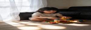 秘诀就三个字:自然光。拉上白纱帘,让光线从侧面斜射进来,沙发深色背景正好衬托人物。孩子穿着日常家居服,翻绘本、抱玩偶、打哈欠——全是真实瞬间。