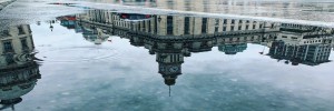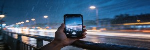 还有一个更简单的:别拍雨,拍雨后的水坑。蹲下来,把手机镜头贴近水坑表面,拍水坑里的倒影——倒过来的建筑、倒过来的行人,比直接拍雨有意思十倍。