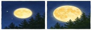 诀窍是:不要只拍月亮,找个前景。让月亮挂在树梢后面、楼顶旁边、塔尖一侧。手机变焦拉到最大(通常5-10倍),对焦在月亮上,拉低曝光直到月亮表面出现纹理。前景是黑的剪影,月亮是亮的细节,画面立刻有意境。