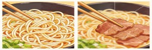 拍一碗拉面,筷子随手扔在旁边,画面乱糟糟。不如把筷子主动放在碗边,斜着指向碗里的肉。