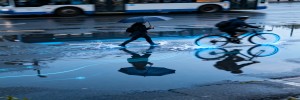 雨后别急着回家。地面的积水是天然的倒影镜,能让普通街景变成超现实画面。