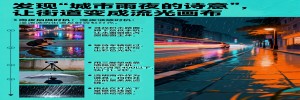 雨夜别急着回家。湿漉漉的街道反射着霓虹灯光,是最佳拍摄时机。