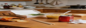 把菜盘子摆好,筷子或勺子放在旁边作为引导,手机从上往下垂直拍摄。这种角度能完整呈现一桌菜的布局,显得很有秩序感。