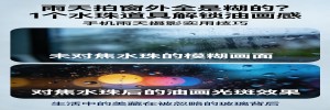 道具很简单:就是玻璃上的水珠。关键在于对焦点要对在水珠上,而不是远处的灯光。